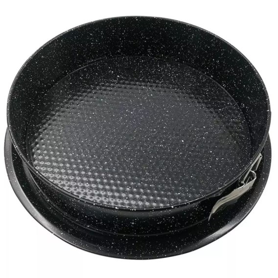 Okrągła tortownica z odpinanym pierścieniem do pieczenia ciasta firmy KINGHOFF. Dzięki możliwość rozpięcia pierścienia mamy możliwość łatwego wyjęcia z formy naszego wypieku. Tortownica pokryta jest powłoką marmurkową zapobiegającą przywieraniu wypieków.