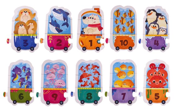 Gra edukacyjna, matematyczna Wagonik dla dzieci od 3-go roku życia. Gra składa się z 40 elementów. Zadaniem gracza jest ułożyć pociąg składający się z 10 wagoników. Każdemu wagonikowi, dziecko musi przyporządkować cyferkę oraz obrazek z ilością zwierzątek odpowiadający cyferce wagonika. Gra uczy logicznego myślenia, spostrzegawczości oraz rozpoznawania cyferek w zakresie 1 do 10. Opakowanie posiada wygodną rączkę do przenoszenia, tak by dziecko mogło zabrać ją wszędzie ze sobą. Funkcje gry: - gra edukacyjna, - przeznaczona dla dzieci od 3-go roku życia, - znakomicie wykonana, w żywych kolorach, - wymaga spostrzegawczości, - rozwija koordynację ręka-oko, - uczy logicznego i szybkiego myślenia, - uczy rozpoznawania cyferek w zakresie 1 do 10, - świetny sposób na wspólne spędzenie czasu, - idealny sposób na nudę lub oderwanie dzieci od komputerów, telefonów, tabletów. |