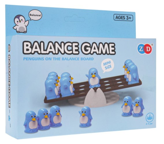 - podstawa do gry na stojaku, - odważniki w postaci małych pingwinków 3 x pojedyncze pingwinki, 3 x podwójne pingwinki, 3 x potrójne pingwinki, - instrukcja gry. |