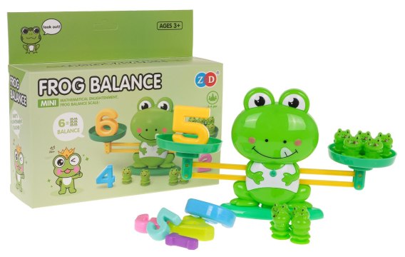 Gra zręcznościowa Waga Balansująca Żaba dla dzieci od 3-go roku życia. Ta fascynująca gra, zapewni Twojemu dziecku, długie godziny edukacyjnej zabawy. Gra składa się z wagi szalkowej z uroczą żabką w środku odważników w postaci małych żabek i cyferek oraz karty z zadaniami matematycznymi. Po jednej stronie wagi układamy cyferki a po drugiej odpowiednią ilość żabek, tak aby zachować balans. Gra rozwija umiejętności dodawania, logiczne myślenie, wyobraźnie i kreatywność. Dziecko poznaje podstawy matematyki i fizyki.