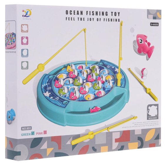 Zręcznościowa gra dla dzieci powyżej 3-go roku życia. Gra polega na łowieniu rybek na wędkę. Wędki i rybki posiadają magnesy. Zestaw składa się z obrotowej podstawy, na której umieszcza się rybki oraz wędek. Podstawa zasilana jest bateriami typu 2 x 1,5 V (brak w zestawie). Podczas gry słychać wesołe melodie. Funkcje gry: - odpowiednia dla dzieci powyżej 3-go roku życia, - wykonana z najlepszej jakości plastiku w żywych kolorach, - posiada efekty dźwiękowe w postaci wesołej melodii, efekty można wyłączyć, - podstawa się obraca, - rybki i wędki posiadają magnesy |