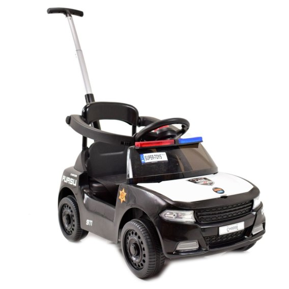 Pierwszy jeździk policyjny dla maluszka z składaną rączką dopchania przez Rodzica z całą pewności zainteresuje przyszłego policjanta.