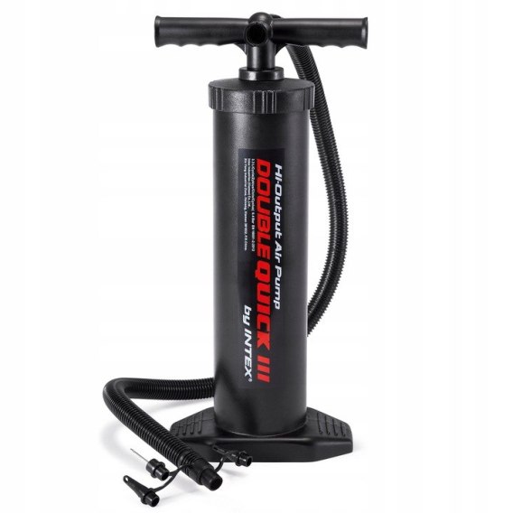 Model Double Quick III marki INTEX to wytrzymała i stabilna pompka ręczna, która pozwala na szybkie nadmuchanie Twojego materaca, łóżka, łódki oraz innych przedmiotów wymagających napompowania.