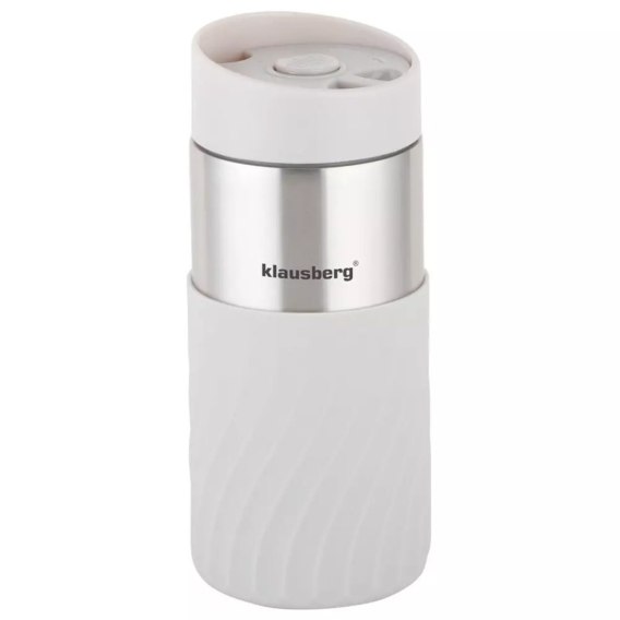 Kubek - termos nowej generacji o pojemności 300 ml firmy KLAUSBERG wykonany ze stali nierdzewnej z izolacją próżniową DOUBLE WALL. Kubek posiada odkręcana pokrywkę z wylewką Click-clack. Przycisk w pozycji OFF zamyka szczelnie kubek i działa on jak termos. Gdy przycisk jest w pozycji ON można z niego korzystać jak ze zwykłego kubka. Z dolnej części kubek wykończony opaską silikonową z falistym wzorem zapewniającą pewny chwyt. Izolacja próżniowa sprawia że kubek długo utrzymuje temperaturę wewnątrz, podobnie jak termos. Podstawa antypoślizgowa. Kubek termiczny Klausberg prezentuje się jako esencja nowoczesnego designu i funkcjonalności. Jego beżowy kolor w połączeniu ze srebrnymi elementami tworzy doskonałą harmonię, dodając mu nie tylko elegancji, ale też charakteru.