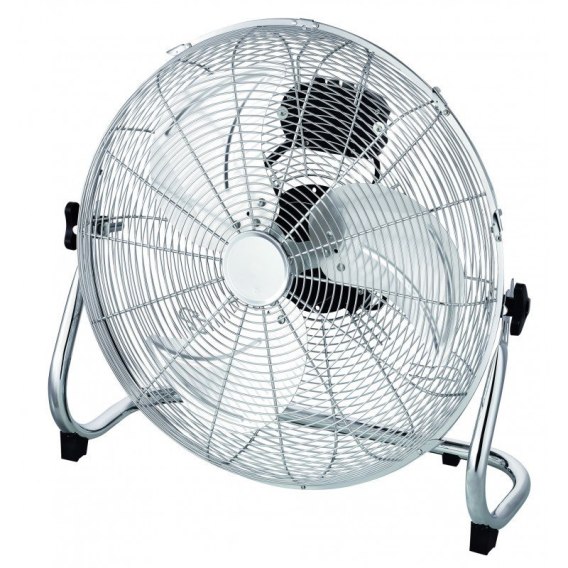 - Metalowy, chromowany, solidny wentylator podłogowy, do zastosowania w pomieszczeniach.