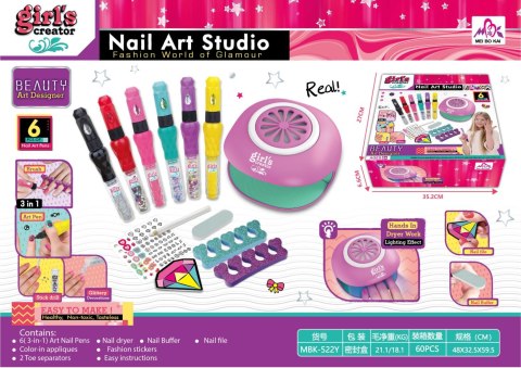 Zestaw do Malowania Paznokci dla dzieci 6+ Interaktywna Suszarka + 6 Pisaków 3w1 + Akcesoria 14 el.